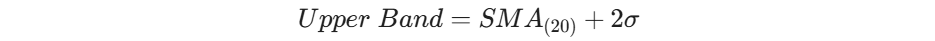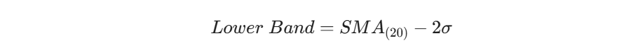 Bollinger Bands have stood the test of time on Wall Street because they are anchored in rigorous statistics—specifically, Normal Distribution and Standard Deviation ($\sigma$). The construction is elegantly simple, consisting of just three lines: