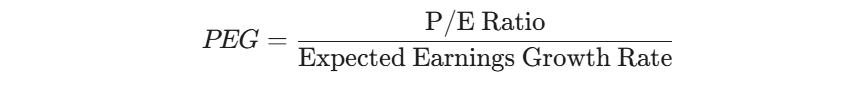 To calculate PEG, you simply divide the company's P/E ratio by its expected Earnings Per Share (EPS) growth rate.